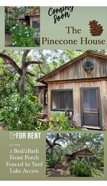 (Press Play) Welcome to the Pinecone House, a charming cottage style country home nestled under big oak tree. After an entire year of renovations I am proud to present my favorite home renovation yet thus far. Everything about this home is custom and unique combining styles of author Marjorie Kennan Rawlings home in Cross Creek and embracing the 1930's Art Deco style featuring stucco walls and archways of the existing home. With the recent renovations this home offers comfort and convenience. This 2 bedroom 2 bath home features a brightly lit bonus room perfect for office or nursery, screened in front porch, original pine floors throughout, recently renovated tile bathroom and shower, crowfoot bathtub with skylight, farmhouse double washboard sink, all brand new appliances, large pantry room, back screened in porch with washer and dryer hookup and outdoor shower. The efficient three head unit minisplit air condition and heating system allows you to customize the temperature in different parts of the home, allowing reduced utility usage. This 1,000 square foot house is the perfect size for a single, couple or a small family, looking for a peaceful country lifestyle with just a short 20 minute drive to Gainesville.